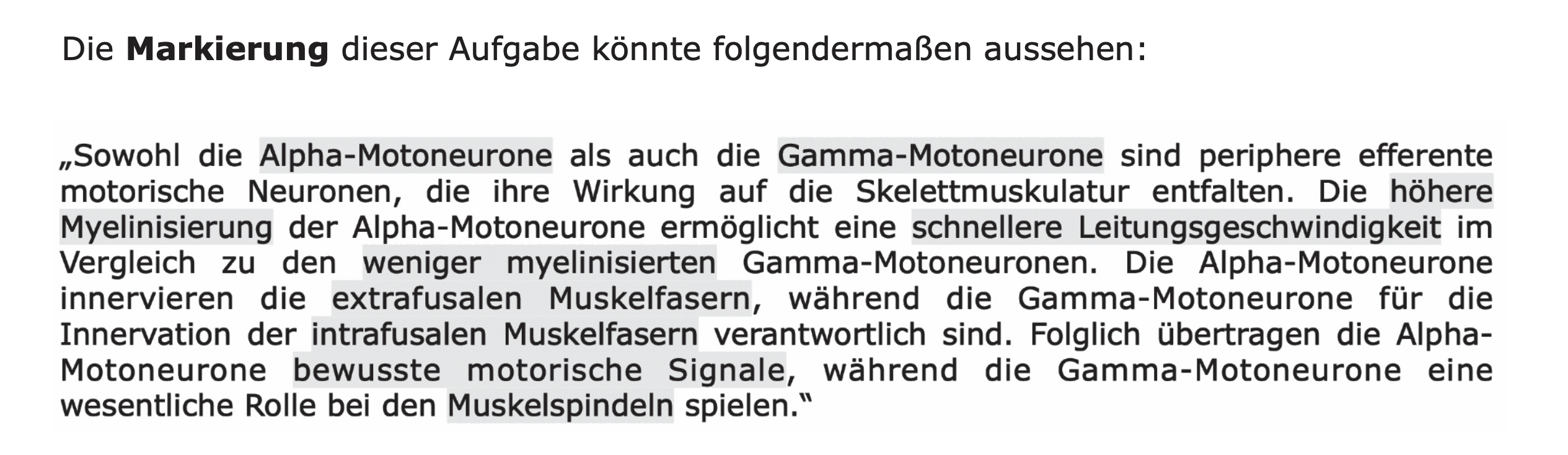 Verwende beim Lesen verschiedene Farben oder Symbole, um zentrale Begriffe, Prozesse oder Gegensätze zu kennzeichnen. Besonders wichtig ist es, unterschiedliche Themen klar zu trennen (z. B. Alpha- vs. Gamma-Motoneurone). So kannst du später gezielt Textstellen nachlesen, wenn du Aussagen überprüfst. Falls du dich bereits jetzt in verschiedene TMS-Techniken einlesen möchtest, sichere dir hier gerne unsere kostenlosen TMS-Übungsdateien! - Skizzen anfertigen