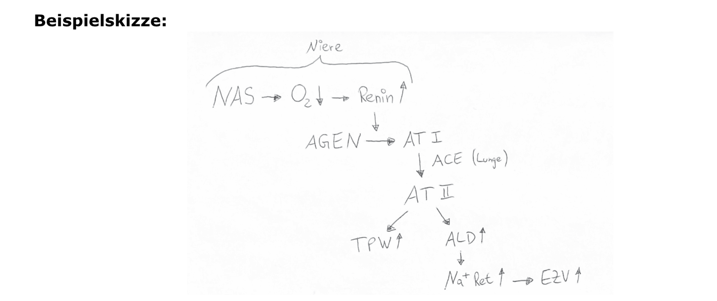 In vielen Texten werden Abläufe oder Regelkreise beschrieben. Hier kann es sich lohnen, Informationen kurz und übersichtlich in einer Skizze festzuhalten. So erkennst du Abhängigkeiten zwischen Schritten und kannst die Richtigkeit von Aussagen schneller überprüfen. Verwende immer gleiche Symbole und Abkürzungen, um deine Skizzen intuitiv lesbar zu machen.