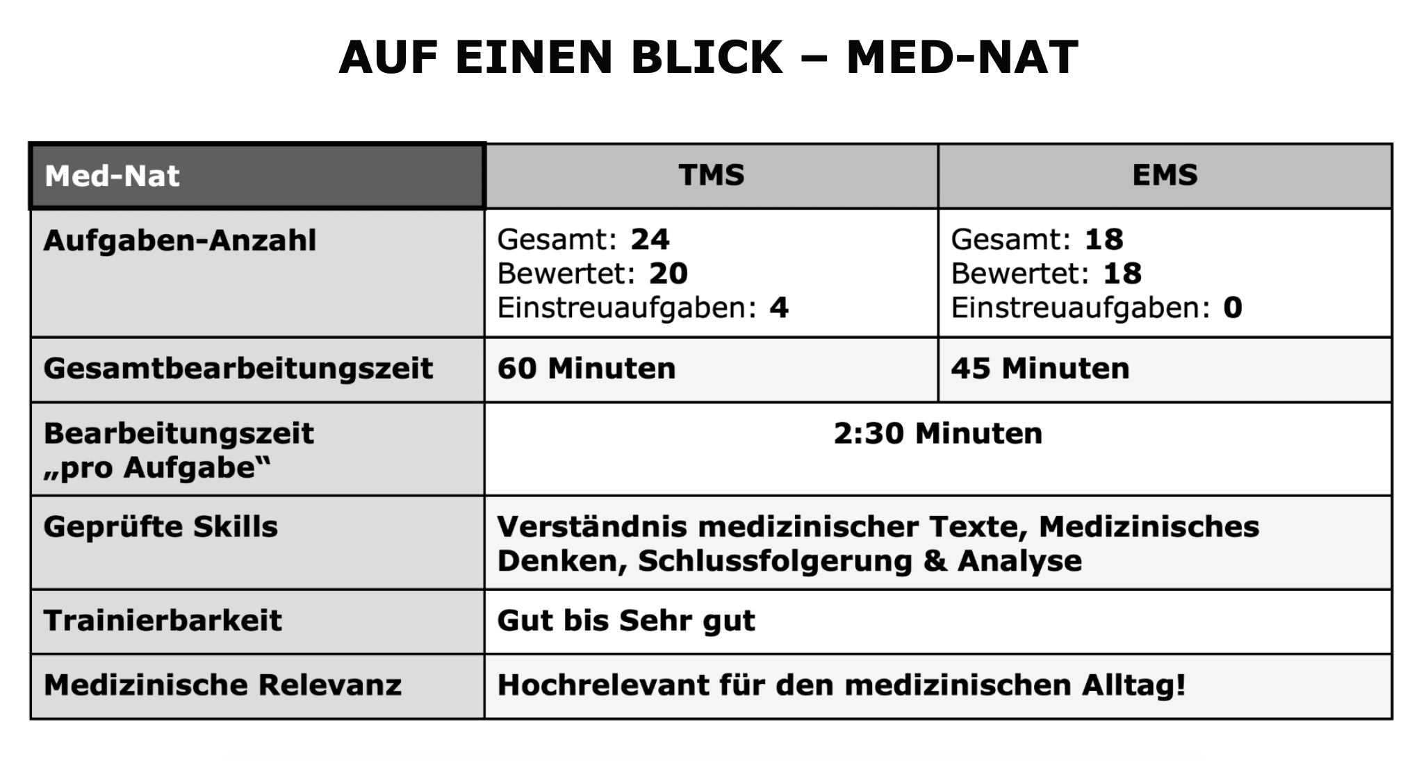 Die Übersicht zeigt dir die wichtigsten Information zum Untertest Medizinisch-Naturwissenschaftliches Grundverständnis auf einen Blick.