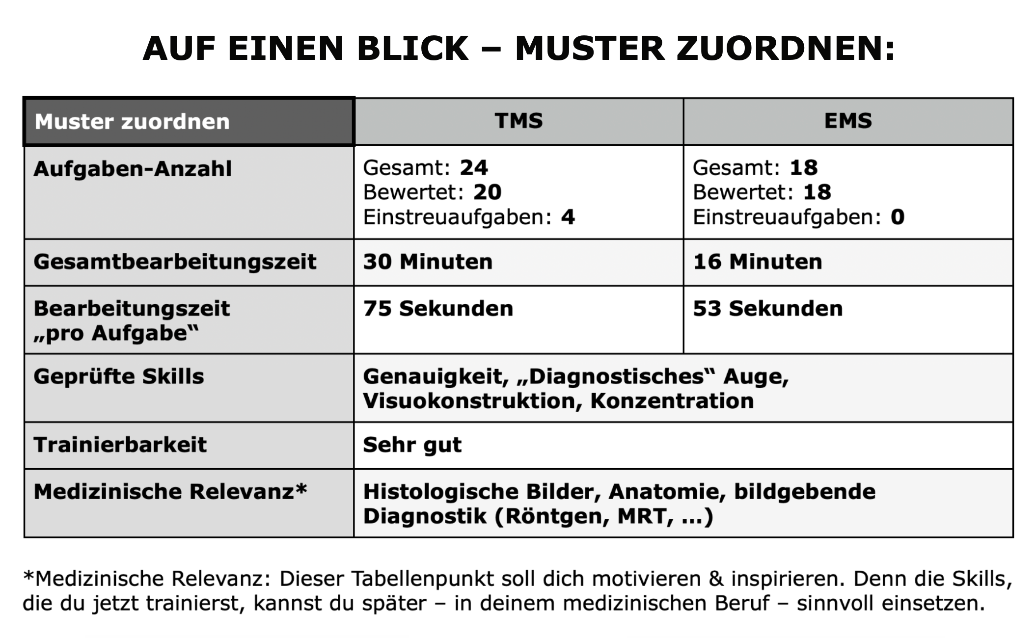 Nein. Jeder Mensch hat individuelle Stärken und Schwächen und es ist wichtig, die für dich am besten geeignete Technik zu finden, um im TMS erfolgreich zu sein. Der Kreuzblick kann für manche hilfreich sein, ist aber keine Voraussetzung – auch mit anderen Strategien wie strukturierter Blickführung oder Ausschlussverfahren kannst du sehr gute Ergebnisse erzielen. Wenn du den Kreuzblick allerdings erlernen möchtest, dann klicke hier, um dir unsere kostenlose Kreuzblick-Datei zu sichern!