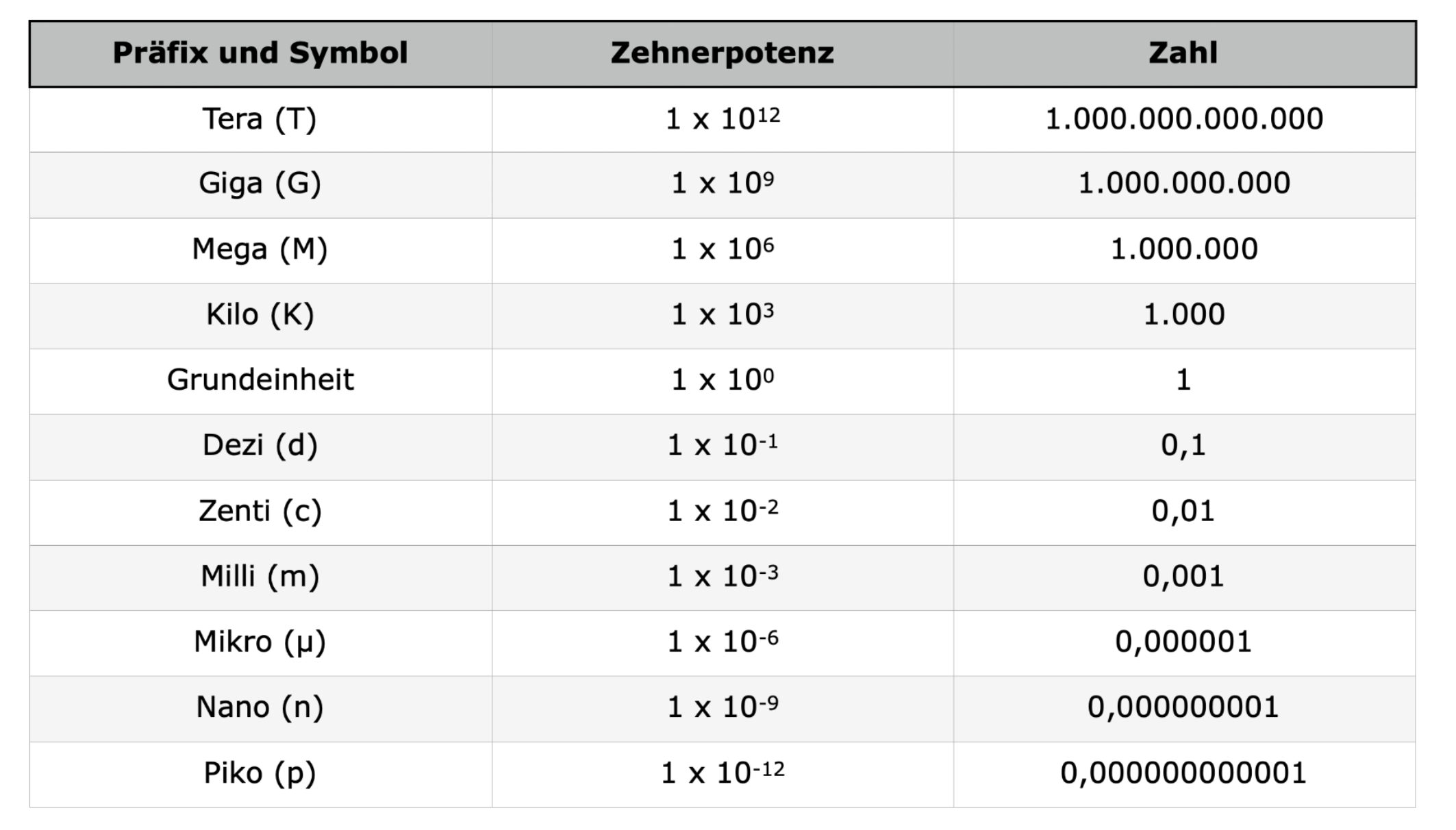 - Umformungen → Einheiten, Präfixe und Rechenoperationen sicher beherrschen